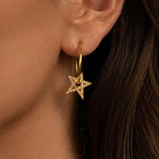 Annie Haak Clear Crystal Star Hoop Gold Earrings